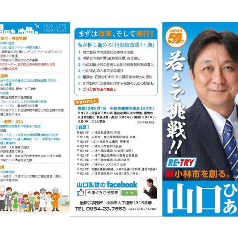 山口ひろあき オフィシャルホームページを公開しました。 小林市に掛け...